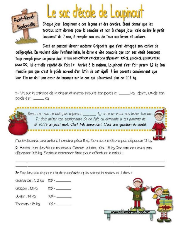 Une activité de mathématiques ludique : La fiche inclut également une activité créative intitulée « Le sac de Loupinout », parfaite pour joindre l'apprentissage des mathématiques à l'esprit de Noël.